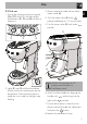 Problem Possible cause EN IT Cleaning and maintenance Solution The filter holder does not latch into the espresso The filter basket is too full. machine Use the measuring scoop provided and use the correct filter basket. The espresso machine does not work and all the Possible fault. lights are blinking Unplug the espresso machine and contact an authorized service center. The ground coffee has not been tamped enough. Tamp the coffee more. There is too little ground coffee. Increase the amount.