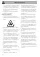 Установка • С изготовителя снимается всякая ответственность за ущерб, нанесенный по причине использования агрегата без системы заземления. • На агрегат не должны попадать прямые солнечные лучи. • Не разрешается эксплуатировать агрегат снаружи или подвергать его воздействию атмосферных осадков. • Размещайте агрегат на расстоянии не менее 50 см от конфорок, газовых плит, нагревательных источников и минимум 5 см от электрических плит.