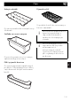 Użytkowanie Uchwyt na butelki Można go umieścić na różnych wysokościach i podniesioną przednią częścią, co umożliwia skośne ustawienie butelek. W przypadku butelek dłuższych od standardowego rozmiaru, należy umieścić uchwyt na wysokości, na której nie będą zakłócać prawidłowego zamknięcia drzwiczek. Aby go całkowicie wyjąć, należy podnieść tylną część, a następnie wysunąć. Unikać wkładania do dolnego pojemnika zbyt ciężkich butelek i uważać, aby nie upadały na dno w momencie wkładania.