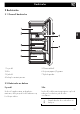 Beskrivelse 2 Beskrivelse NO 2.1 Generell beskrivelse 1 Frysedel 2 Vifte 3 Kjøledel 4 Avløp for avrimingsvann 5 Grønnsakskuff 6 Betjeningspanel/lyspære 7 Kjøleskapsdør 2.2 Beskrivelse av delene Frysedel Vifte Brukes til oppbevaring av dypfryste matvarer, innfrysing av ferske matvarer og for å lage isbiter. Brukes til fordeling av temperaturen og for å redusere kondensen på de ulike overflatene. Strømforbruket økes når viften er i funksjon.