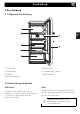 Beschreibung 2 Beschreibung DE 2.1 Allgemeine Beschreibung 1 Gefrierfach 2 Kühlgebläse 3 Kühlfach 4 Tauwasserablauf 5 Gemüsefach 6 Bedienblende/Lampe 7 Kühlschranktür 2.2 Beschreibung der Bauteile Gefrierfach Lüfter Nützlich für die Aufbewahrung von tiefgefrorenen Lebensmitteln, das Einfrieren von frischen Lebensmitteln und die Eiswürfelbereitung. Nützlich für die Verteilung der Temperatur und die Verminderung des Kondenswassers auf den Einlegeböden.