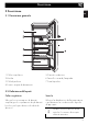 Descrizione IT 2 Descrizione 2.1 Descrizione generale 1 Cella congelatore 2 Ventola 3 Cella frigorifera 4 Scarico acqua di sbrinamento 5 Cassetto verduriera 6 Pannello comandi/Lampada 7 Porta frigorifero 2.2 Definizione delle parti Cella congelatore Ventola Utile per la conservazione di alimenti surgelati, per il congelamento degli alimenti freschi e per la produzione di cubetti di ghiaccio. Utile per la distribuzione della temperatura e per diminuire la condensa sulle superfici di appoggio.