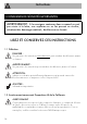 Instructions • N’utilisez pas d’appareil électrique à l’intérieur du compartiment refroidisseur de vin, à moins qu’il soit d’un type recommandé par le fabricant. • N’utilisez pas de matériel électrique à l’intérieur de l’appareil. • Utilisez des produits de nettoyage ininflammables. • Ne grimpez pas sur les étagères du réfrigérateur, ne vous tenez pas debout dessus et ne vous accrochez pas. Cela pourrait entraîner des blessures graves ou endommager l’appareil.