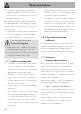 Чистка и уход 5 Чистка и уход 5.2 Инструкции 5.1 Размораживание Неправильное использование Риск повреждения поверхностей • Не используйте струи пара для очистки агрегата. • Не очищайте компоненты из стали или с металлическим покрытием (напр., анодирование, никелирование, хромирование) препаратами с содержанием хлора, аммиака или отбеливателя. • Не применяйте для очистки стеклянных деталей абразивные или коррозионные моющие средства (напр., чистящие порошки, пятновыводители и металлические мочалки).