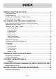 INDEX BEFORE USING THE APPLIANCE.......................................................... 5 General warnings.............................................................................................. 5 Safety warnings................................................................................................. 8 Installing and operating your fridge freezer....................................................... 9 Before Using your Fridge................................................................
