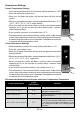 • The initial temperature value for the freezer setting indicator is -18°C.