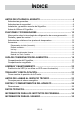 Índice ANTES DE UTILIZAR EL APARATO........................................................ 4 Advertencias generales..................................................................................... 4 Advertencias de seguridad................................................................................ 8 Instalación y puesta en marcha del frigorífico................................................... 8 Antes de Utilizar el Frigorífico...................................................................