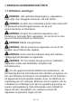 1 INNAN DU ANVÄNDER DIN FRYS 1.1 Allmänna varningar VARNING: Håll ventilationsöppningarna, i apparatens hölje eller i den inbyggda strukturen, fria från hinder. VARNING: Använd inte mekaniska enheter eller andra sätt att påskynda avfrostningsprocessen, än de som rekommenderas av tillverkaren. VARNING: Använd inte elektriska apparater inne i förvaring av livsmedel fack i apparaten, om de inte är av den typ som rekommenderas av tillverkaren. VARNING:Skada inte kylkretsen.