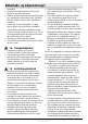Klargøring 4.3 Første brug Før produktet tages i brug, skal du sikre, at alle forberedelser er foretaget i overensstemmelse med anvisningerne i afsnittene ”Sikkerheds- og miljøanvisninger” og ”Opsætning”. Rengør køleskabet indvendigt som anbefalet i afsnittet ”Vedligeholdelse og rengøring”. Før du tænder køleskabet, skal du sørge for, at det er tørt indeni. Sæt køleskabet til en strømforbindelse med jordforbindelse. Det indvendige lys tændes, når køleskabsdøren åbnes.