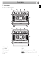 4 Function knob Interior lighting The oven's various functions are suitable for different cooking modes. After selecting the required function, set the cooking temperature using the temperature knob. The appliance interior lighting comes on: • When the door is opened • When any function is selected. EN Description 5 Cooking zone control knobs Useful for switching on and adjusting the cooking zones of the cooktop.