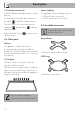 • Do not use cleaning products containing chlorine, ammonia or bleach on steel parts or parts with metallic surface finishes (e.g. anodizing, nickel- or chromiumplating). • Do not use abrasive or corrosive detergents (e.g. scouring powders, stain removers and metallic sponges) on glass parts. • Do not wash the removable components such as the cooktop pan stands, flame-spreader crowns and burner caps in a dishwasher. • Never use the oven door to lever the appliance into place when fitting.