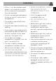Installation EN 5.6 For the installer • The plug must remain accessible after the installation is complete. Do not kink or trap the mains connection cable. • The appliance must be fitted according to the installation diagrams. • Do not attempt to turn or stress the threaded elbow on the manifold. You risk damage to this part of the appliance which may void the manufacturer’s warranty. • Before leaving check all connections for gas leaks with soap and water. DO NOT use a naked flame for detecting leaks.