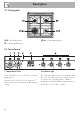 Description 2.2 Cooking hob AUX = Auxiliary burner SR = Semi-rapid burner UR-3c = Ultra-rapid burner 2.3 Control panel 1 Temperature knob 2 Indicator light This knob allows you to select the cooking temperature. Turn the knob clockwise to the required value, between the minimum and maximum setting. The indicator light comes on to indicate that the oven is heating up. It turns off as soon as it reaches the set temperature.