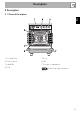 Table of contents 1.1 1.2 1.3 1.4 1.5 1.6 1.7 52 General safety instructions Manufacturer liability Appliance purpose Identification plate This user manual Disposal How to read the user manual 2 Description 2.1 2.2 2.3 2.4 2.5 59 General Description Cooking hob Control panel Other parts Available accessories 3 Use 3.1 3.2 3.3 3.4 3.5 3.6 3.7 Instructions Cleaning the surfaces Cleaning the hob Cleaning the door Cleaning the oven cavity Pyrolytic Extraordinary maintenance 5 Installation 5.1 5.2 5.3 5.