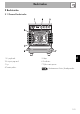 Beskrivelse 3 Funktionsknap Afkølingsventilator Ovnens funktioner er tilpasset forskellige former for tilberedning. Efter at have valgt den ønskede funktion, indstilles tilberedningstemperaturen med temperaturknappen. 4 Ur med programmeringsfunktion Timeren med minuttæller aktiverer kun lydsignalet, den afbryder ikke tilberedningen. 5 Knapper til kogepladens blus Anvendes til at tænde og indstille kogepladens blus. Tryk på og drej knapperne mod urets retning til værdien for at tænde de tilhørende blus.