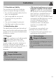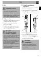 Use 3 Use Danger of electrocution • • • • Plug into an earthed 3-pin socket. Do not use an adapter. Do not use an extension cord. Failure to follow these instructions could result in death, fire, or electric shock. 1. Use the most suitable accessory for the food you wish to process. 2. Insert the accessory (1) into the motor body (2) and twist it anticlockwise so that it snaps into the motor body housing. 3.1 Before first use 1. Remove any labels and stickers from the hand blender and its accessories. 2.
