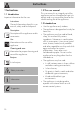 Instructions 1 Instructions 1.1 Introduction Important information for the user: Instructions General information about this user manual, safety and final disposal. Description Description of the appliance and its accessories. Use Information on the use of the appliance. Cleaning and care Information for proper cleaning and care of the appliance. Recipes List of recipes. Safety instructions Information Suggestion 22 1.