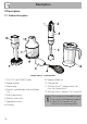 Contents 1.1 1.2 1.3 1.4 1.5 1.6 1.7 Introduction This user manual Intended use General safety instructions Manufacturer liability Identification plate Disposal 2 Description 2.1 Product description 2.2 Description of controls 2.3 Accessories 3 Use 3.1 3.2 3.3 3.4 3.5 22 22 22 22 23 25 25 25 EN 1 Instructions 26 26 27 27 29 Before first use Using the hand blender accessories Using the chopper Using the vegetable masher Food processing guide 4 Recipes 5 Cleaning and care 5.1 Instructions 5.