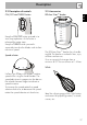 Description 2.3 Accessories ON/OFF and TURBO button BPA-free TritanTM beaker EN 2.2 Description of controls Keep the ON/OFF button pressed in to start/stop operation. As the button is released the motor stops. Keep the TURBO button pressed in separately to make the blades work to their maximum speed. Speed selector The BPA-free TritanTM beaker has a handle and lid. The beaker is marked in litres, cups, millilitres and ounces. It has a capacity that ranges from a minimum of 0.2 l to a maximum of 1.