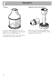 Use Tips for using your hand blender • Blender attachment: Move the hand blender gently up and down to obtain best results. • Only start the hand blender when the blender shaft is placed into the mixture to be blended. • Cut food into small pieces to make blending and chopping easier. • Do not immerse the motor body in water or other liquids. • To incorporate air into the mixture, hold the blade just under the surface.