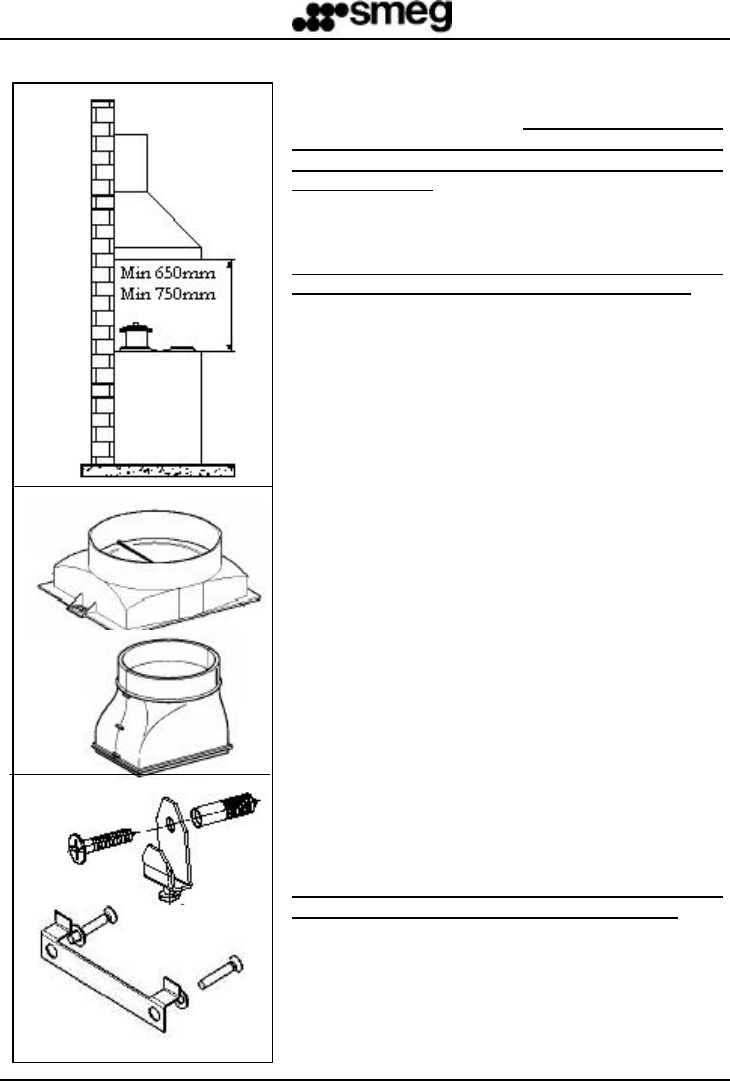 • The extracted air must not be routed into a duct used to discharge fumes of gas-