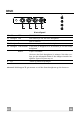 BRUK T1 T2 T3 L Kontrollpanel KNAPP LED T1 Hastighet Tent FUNKSJONER Slår motoren på ved den første hastigheten. Slår av motoren. T2 Hastighet Tent Slår motoren på ved den andre hastigheten. T3 Hastighet Tent konstant Trykk kort på knappen for å slå motoren på ved den tredje hastigheten. Blinker Trykk i 2 sekunder. Aktiverer den fjerde hastigheten i 6 minutter. Når tiden er utløpt går den automatisk tilbake til den tidligere innstilte hastigheten. Egnet til å fjerne mye os.