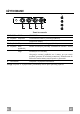UŻYTKOWANIE T1 T2 T3 L Panel sterowania PRZYCISK DIODA FUNKCJE T1 Prędkość Włączona Uruchomienie silnika z pierwszą prędkością. T2 Prędkość Włączona Uruchomienie silnika z drugą prędkością. T3 Prędkość Stała prędkością Krótkie naciśnięcie powoduje uruchomienie silnika z trzecią Wyłączanie silnika. Miga Naciśnięcie na 2 sekundy. Aktywacja czwartej prędkości na 6 minut, po tym czasie prędkość powraca do wcześniej ustawionej. Dostosowana do obecności bardzo intensywnych oparów z gotowania.