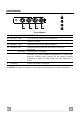 ANVÄNDING T1 T2 T3 L Kontrollpanel KNAPP LYSDIOD FUNKTIONER T1 Hastighet Tänd Aktiverar motorn på den första hastigheten. Stänger av motorn. T2 Hastighet Tänd Aktiverar motorn på den andra hastigheten. T3 Hastighet Fast Om den trycks kort aktiverar den motorn på den tredje hastigheten. Blinkande Om den trycks i 2 sekunder. Aktiveras den fjärde hastigheten tidsinställd på 6 minuter, när denna tid förflutit återgår systemet till den tidigare inställda hastigheten.