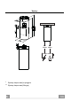 Montaż komina i mocowanie korpusu okapu Komin należy przekręcić otworem w górę dla wersji filtrującej i vice-versa otworem w dół dla wersji z wyciągiem. • Włożyć komin górny od dołu do góry i zamocować go w części górnej na ramie przy pomocy 2 wcześniej odkręconych śrub, zwracając uwagę w wypadku wersji filtrującej, aby otwór komina znajdował się naprzeciw wyjścia złącza filtrowania 15.