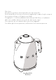 7. Appuyez sur le levier (3) pour allumer la bouilloire. Le voyant DEL (4) s'allumera et deviendra le blanc. 4 Les légères marques ou les petits anneaux à l'intérieur de la bouilloire sont normaux, et sont reliés aux inspections fonctionnelles effectuées sur chaque unité avant l'emballage. 3 8. Lorsque l'eau bout, le levier émettre automatiquement un clic en position ARRÊT (OFF) et le voyant DEL s'éteindra. 9.