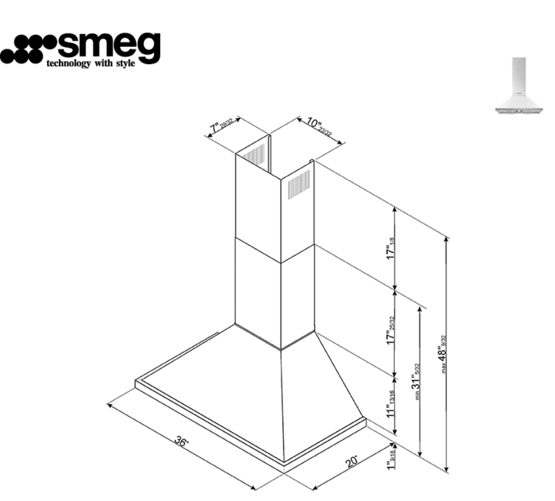 Portofino Series 36 Inch Wall Mount Ducted Hood
