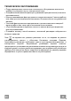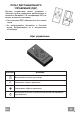 ПУЛЬТ ДИСТАНЦИОННОГО УПРАВЛЕНИЯ (ПДУ) Данным устройством можно управлять с помощью пульта управления, работающего от щелочных батареек 12 В типоразмера А23 (не входят в комплект поставки). • Не оставляйте ПДУ поблизости от источников тепла. • Не выбрасывайте батарейки в бытовой мусор. Выбрасывайте их в специальные контейнеры. Щит управления КНОПКА ФУНКЦИЯ Включает/выключает вентилятор. Уменьшает обороты двигателя. Увеличивает обороты двигателя.