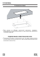 УСТАНОВКА Установка вытяжки • Если потолок не обладает достаточной прочностью, специалист, производящий установку должен усилить его при помощи плит, крепящихся к несущим элементам. ПОДКЛЮЧЕНИЕ К ЭЛЕКТРИЧЕСКОЙ СЕТИ • Подсоедините вытяжку к электрической сети. На линии питания вытяжки установите двухполюсный выключатель с расстоянием между разомкнутыми контактами не менее 3 мм.