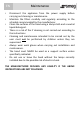 EN • • • • • • • • Maintenance Disconnect the appliance from the power supply before carrying out cleaning or maintenance. Maintain the filters carefully and regularly according to the schedule recommended by the manufacturer. Clean the surfaces of the hood using a damp cloth and a neutral liquid detergent.