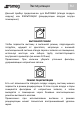 Инструкции по эксплуатации RU Настройка яркости лампочек _______________________________________________________ Краткие нажатия на кнопку приводят к мгновенному и быстрому включению или выключению лампочек. Нажав и удерживая в этом положении кнопку более 1 секунды, начинает постепенно увеличиваться уровень яркости до максимального, а затем уменьшаться до минимального и так без конца, пока не будет отпущена кнопка. Дойдя до требуемого уровня яркости, отпустите кнопку.