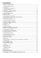 CONTENTS 1.SAFETY INSTRUCTIONS................................................................................................ .1 1.1 General Safety Warnings................................................................................................2 1.2 During Use ....................................................................................................................7 1.3 Packaging and Environment...........................................................................................8 1.
