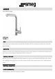 Aesthetics: Universale • Colour: Stainless steel • Finishing: Brushed • Tap type: Single lever • Handshower: Extractable • Spout