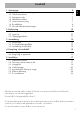 Innehåll 1.1 1.2 1.3 1.4 1.5 1.6 1.7 Allmänna säkerhetsanvisningar Tillverkarens ansvar Apparatens syfte Identifikationsdekal Denna bruksanvisning Bortskaffning Hur man läser bruksanvisningen 2 Beskrivning 2.1 Allmän beskrivning 2.2 Symboler 2.3 Tillgängliga tillbehör 3 Användning 3.1 Anvisningar 3.2 Första användningstillfället 3.3 Användning av spishällen 4 Rengöring och underhåll 4.1 Anvisningar 4.2 Rengöring av apparaten 5 Installation 5.1 5.2 5.3 5.4 5.5 5.6 5.