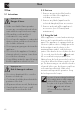 Use 3 Use 3.2 First use 3.1 Instructions Improper use Danger of burns • Make sure that the flame-spreader crowns are correctly positioned in their seats with their respective burner caps. • Oils and fats could catch fire if overheated. Be very careful. • Do not leave the appliance unattended during cooking operations where fats or oils could be released. • Do not spray any spray product near the appliance. • Do not touch the appliance’s heating elements when it is running.