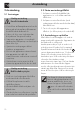 Installation Inställning av lägsta effekt för metangas eller stadsgas 1. Tänd brännaren och vrid den till minimiläge. 2. Dra ut alla vred genom att dra dem uppåt. 3. Vrid på justerskruven vid sidan om kranens stång tills korrekt min. låga erhålls. 5. Vrid snabbt vredet från högsta till lägsta effekten; lågan ska inte slockna. Upprepa momentet på alla gaskranar Inställning av lägsta effekt för flytande gas Vrid skruven som sitter vid sidan om kranens stång medurs och dra åt den helt.