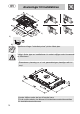 Anvisningar till installatören 3) 2) 4) 2.2 Infästning i bänkskiva, försänkt modell Gör en öppning i bänkskivan med de mått som visas på skissen. A (mm) B (mm) C (mm) D (mm) E (mm) L (mm) X (mm) Y (mm) min 110 min 460 min 750 20÷40 min 50 700 492 700 Denna typ av häll kräver även en 3 mm djup bearbetning i bänkskivan, se dimensioner i fig 4 (detalj A, fig 2). Innan hällen sätts på plats ska det självklistrande svampmaterialet “E” appliceras på den frästa ytan (fig 2).