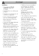 Innehåll 1.1 1.2 1.3 1.4 1.5 1.6 1.7 Allmänna säkerhetsanvisningar Tillverkarens ansvar Apparatens syfte Märkplåt Denna bruksanvisning Bortskaffande Hur man läser bruksanvisningen 2 Beskrivning 2.1 Allmän beskrivning 2.2 Symboler 2.3 Tillgängliga tillbehör 3 Användning 3.1 Anvisningar 3.2 Första användningstillfället 3.3 Användning av spishällen 4 Rengöring och underhåll 4.1 Anvisningar 4.2 Rengöring av apparaten 5 Installation 5.1 5.2 5.3 5.4 5.5 5.6 5.