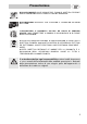 Presentazione NON APPOGGIARE SULLE GRIGLIE DEL PIANO DI COTTURA PENTOLE CON IL FONDO NON PERFETTAMENTE LISCIO E REGOLARE. NON IMPIEGARE RECIPIENTI CHE SUPERINO IL PERIMETRO ESTERNO DEL PIANO. L’APPARECCHIO È DESTINATO ALL’USO DA PARTE DI PERSONE ADULTE. NON PERMETTERE A BAMBINI DI AVVICINARVISI O DI FARNE OGGETTO DI GIOCO.
