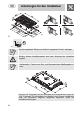Anleitungen für den Installateur 3) 3 2) A 4) Auf die aufgefräste Fläche eine Schicht "saugfesten Primer" auftragen Wichtig: Andere Installationsarten sind unter Anleitung des Herstellers möglich. Außenmaße: Position von Gas- und Stromanschluss (Maßangaben in mm). Hinweis: Die Temperatur auf der Unterseite der Kochmulde kann mehr als 125° C betragen. Zur Vermeidung von Gefahren, den Zugang zum Bereich unter der Kochmulde möglichst weitgehend begrenzen. Siehe die Installationsanleitungen.