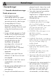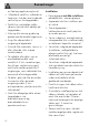 Bemærkninger • • • • • • • • 58 en flad og regelmæssig bund. I tilfælde af spild hvis indholdet er kogt over, skal den overskydende væske fjernes fra kogepladen. Spild ikke syreholdige stoffer, såsom citronsaft eller eddike på kogepladen. Anbring ikke tomme gryder og pander på de tændte kogezoner. Brug ikke dampstråler til rengøring af apparatet. Anvend ikke materialer, som er ru eller slibende, eller skarpe metalskrabere. På ståldele eller dele, som er overfladebehandlet med metalfinish (f. eks.