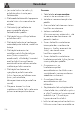 Sisällysluettelo 1.1 1.2 1.3 1.4 1.5 1.6 1.7 106 Turvallisuuteen liittyvät yleiset varoitukset Laitteen käyttötarkoitus Valmistajan vastuu Tämä käyttöohje Tyyppikilpi Hävittäminen Miten käyttöohjetta luetaan 2 Kuvaus 112 2.1 Yleinen kuvaus 2.2 Symbolit 2.3 Saatavana olevat lisävarusteet 3 Käyttö 112 113 115 116 3.1 Varoitukset 3.2 Varotoimenpiteet 3.3 Ensimmäinen käyttökerta 3.4 Kaasupolttimien käyttö 3.5 Induktiolevyjen käyttö 3.6 Erityistoiminnot 3.7 Ylimääräiset toiminnot 3.8 Käyttäjävalikko 3.