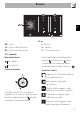 FI Kuvaus 90 cm UR* = Pika SX = Vasen induktiokeittoalue DX = Oikea induktiokeittoalue F = Etulevy R = Takalevy C = Yleisohjausten alue 2.2 Symbolit Kaasukeittoalueet Alue takana Alue edessä Polttimien kytkimet Liekkiä säädetään kiertämällä kytkimiä maksimi- ja minimialueen välissä olevalla alueella. Sammuta polttimet asettamalla kytkimet takaisin asentoon . Symbolien luettelo Näppäin On/Off: laittaa päälle tai pois päältä keittotason. Taukonäppäin: keskeyttää kypsennyksen.