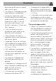 Avvertenze • Non usare in nessun caso l’apparecchio per riscaldare l’ambiente. • Non vaporizzare prodotti spray nelle vicinanze del forno. • Non usare stoviglie o contenitori di plastica per la cottura del cibo. • I recipienti o le bistecchiere devono essere posizionati all'interno del perimetro del piano di cottura. • Tutti i recipienti devono avere il fondo piatto e regolare. • In caso di tracimazione o traboccamento rimuovere il liquido in eccesso dal piano cottura.