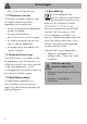 Innehåll 1.1 1.2 1.3 1.4 1.5 1.6 1.7 Allmänna säkerhetsanvisningar Apparatens syfte Tillverkarens ansvar Denna bruksanvisning Identifikationsdekal Bortskaffning Så här läser du bruksanvisningen 2 Beskrivning 2.1 Allmän beskrivning 2.2 Symboler 2.3 Tillgängliga tillbehör 3 Användning 3.1 Anvisningar 3.2 Försiktighetsåtgärder 3.3 Första användningstillfället 3.4 Användning av gasbrännare 3.5 Användning av induktionsplattor 3.6 Specialfunktioner 3.7 Extrafunktioner 3.8 Meny 3.9 Felkoder 3.