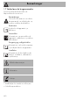 Bemærkninger Dette apparat skal bortskaffes separat fra andet affald (direktiverne 2002/95/EF, 2002/ 96/EF, 2003/108/EF). Dette apparat indeholder ikke stoffer i en sådan mængde, at de betragtes som sundheds- og miljøskadelige ifølge gældende europæiske direktiver. For bortskaffelse af apparatet: • Skær strømforsyningskablet over, og fjern det sammen med stikket. Elektrisk spænding Fare for dødeligt elektrisk stød • Deaktivér hovedstrømforsyningen. • Fjern strømforsyningskablet fra det elektriske anlæg.